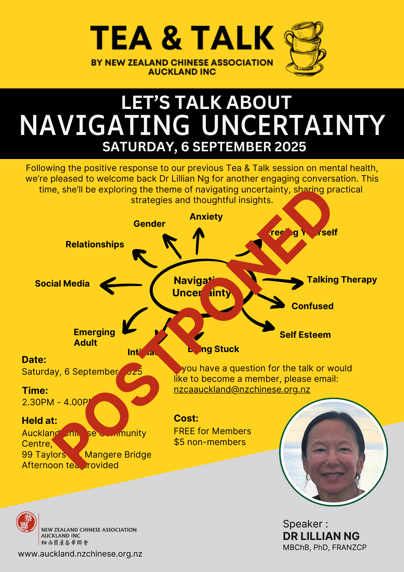Following the positive response to our previous Tea & Talk session on mental health, we’re pleased to welcome back Dr Lillian Ng for another engaging conversation. This time, she’ll be exploring the theme of navigating uncertainty, sharing practical strategies and thoughtful insights.